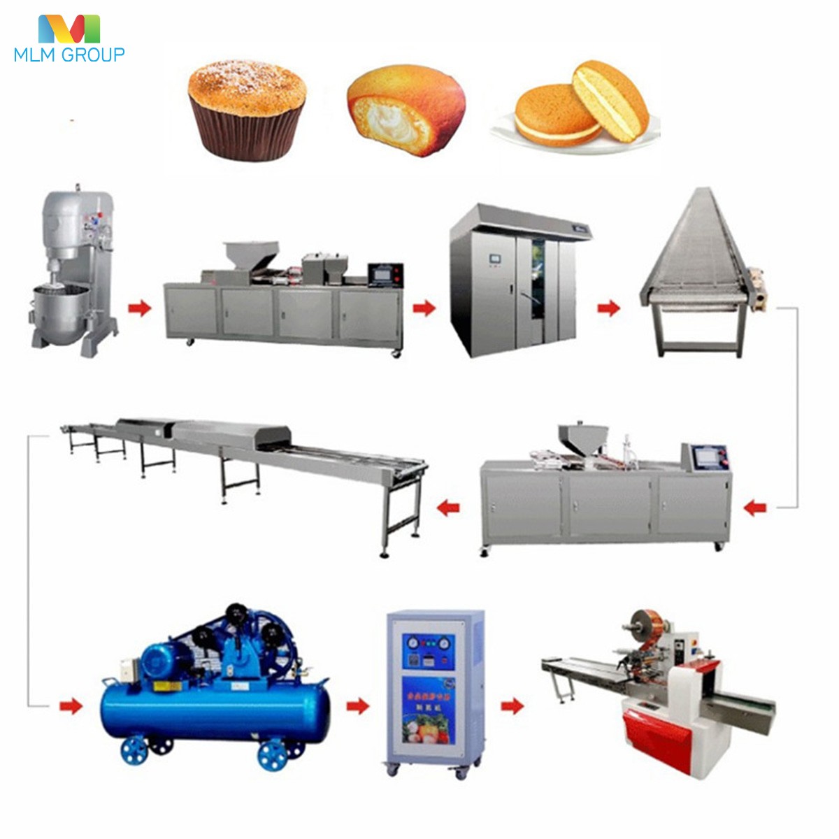 Полностью автоматическая линия по производству швейцарских рулетов и слоеных тортов